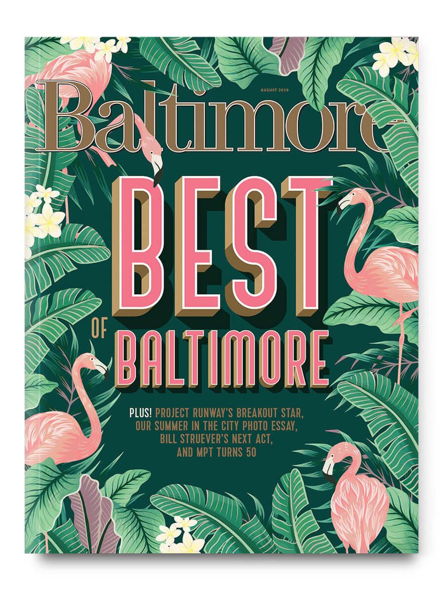 HOW DID IT TAKE US this long to feature pink flamingos on the cover of Best of Baltimore? We created this snazzy image in honor of our no-brainer “Best Exhibit”—— John Waters’ “Indecent Exposure” at the BMA. At this point, even more of the BOB usual suspects were showing up: Le Comptoir du Vin won for “Best Vegetarian Dish,” Fadensonnen won for its wine program, and Petit Louis Bistro won “Best Neighborhood Classic.” The BSO Pulse concert with Dan Deacon won “Best Concert” (Dan, check your mailbox this year, too!) and we saluted Killer Cat of Hampden, giving him “Best Instagram Account.” RIP, Killer Cat. We think even Brandon Scott would agree——you were the best unofficial mayor ever.