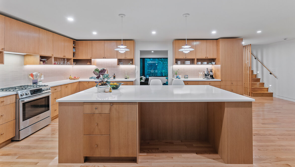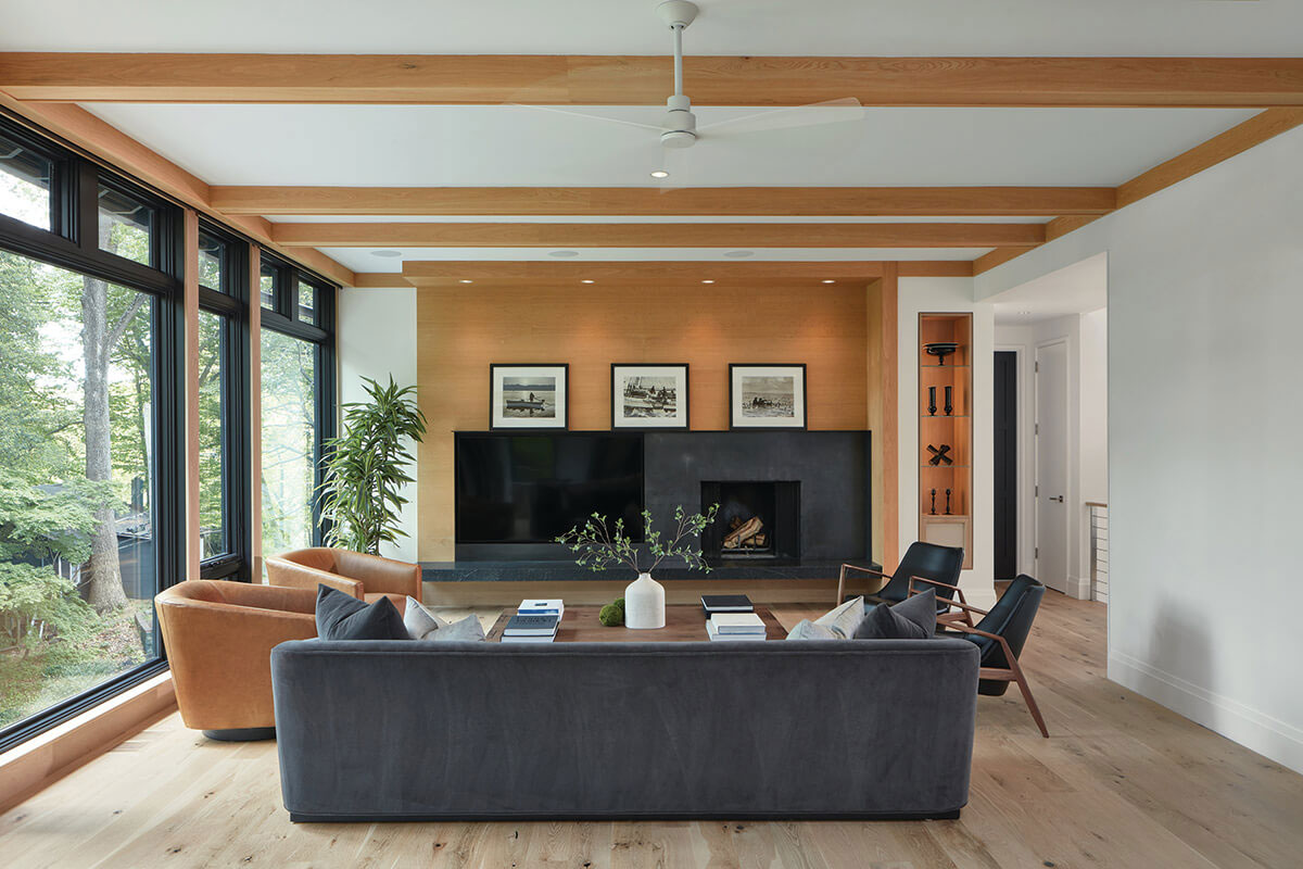 The narrative of this house is anchored in the history of the Sherwood Forest waterside community. The character of homes is strictly dictated to be modest and subordinate to the forest landscape. Studio 3 Architecture’s clients are second-generation members of the community and were keenly aware of the dilemma of the restricted footprint with their “seven wishes,” including unrestricted water views. “Beautiful work, appropriate for the site and in tune with the brief by the clients,” says Williams. “The use of natural light and lighter wood elements combine to make a light and airy home that speaks to the architectural mission.”