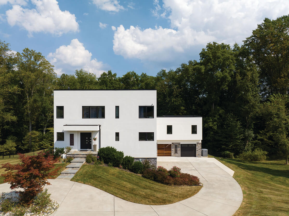 When Sykesville-based Owings Brothers was tasked with adding a home office to this modern structure, they created a two-story addition connected by a bridge to the existing home’s footprint. The addition gave the homeowners an office space, plus a garage area on the ground floor for their collection of motorcycles. They also constructed a beautiful wraparound deck with stairs leading to the landscaped yard below. “The addition blends very well,” says Hendricks. “It makes the existing house much more attractive and interesting.”