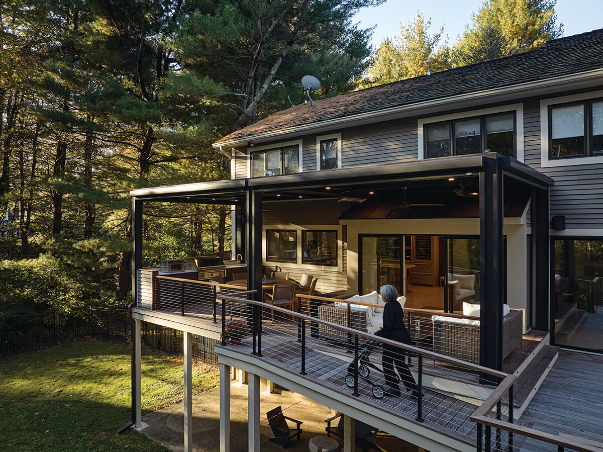 This project sought to transform an underutilized backyard into a functional and accessible outdoor living space. Brooklandville-based Place architecture:design’s goal was to create an inclusive, accessible space with flexible outdoor living areas that prioritized the homeowner’s goals—offering an inviting environment for their large family to relax, dine, and entertain. “This multi-level decking that’s ADA-compliant is a wonderful addition to this structure,” says Williams. Hendricks agrees: “It’s awesome to see the ADA component of this project integrated in a thoughtful and attractive manner. This project really enhances the look and function of the home.”