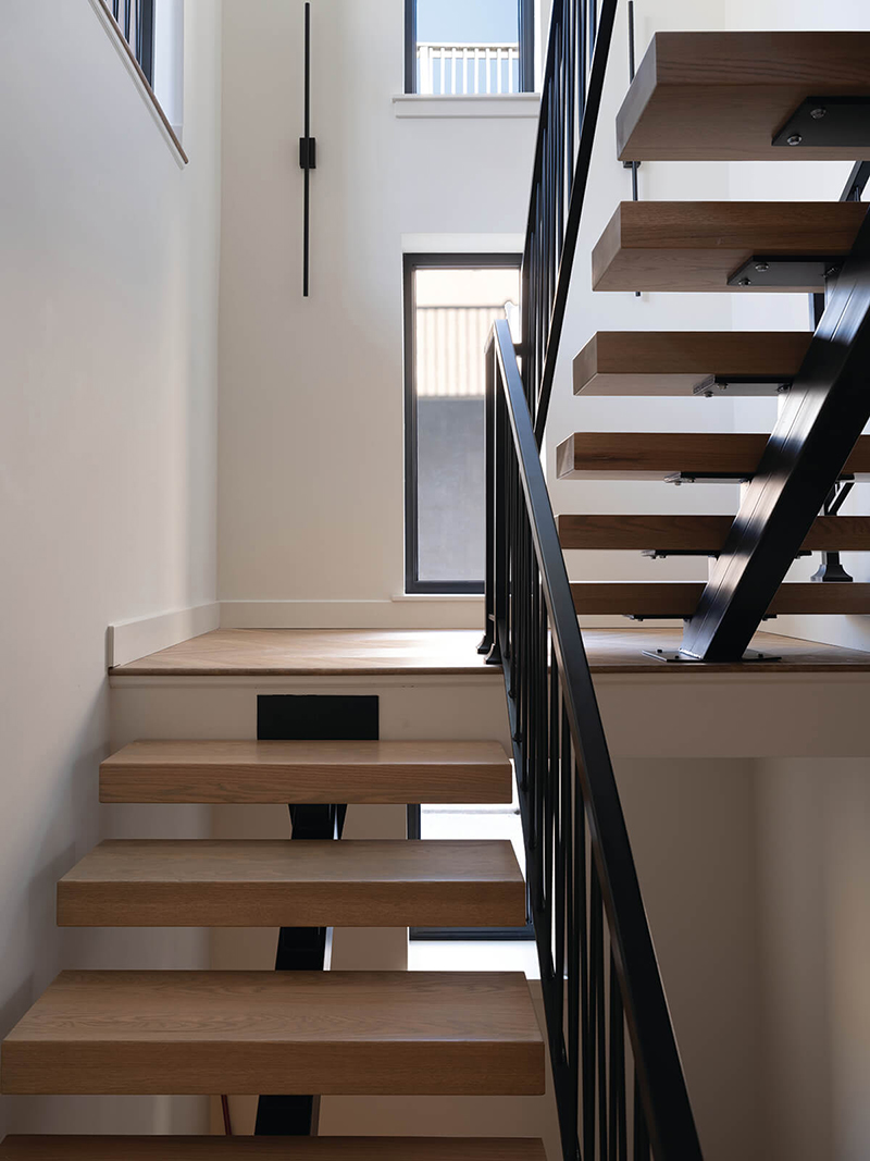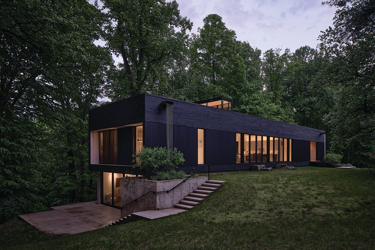 The story of 708 S. Baylis in Baltimore includes many chapters: It was a humble corner store at the turn of the century, a single-family home for generations of families, and even a neighborhood pub. Baltimore-based EastWing Architects was brought in to transform it into a cohesive single-family home once again. The design of the home is an exploration of capturing light, punctuated by the insertion of three vertical lightwells that emphasize the centralized stairs and floods natural light into a shower with a 15-foot ceiling height. Judge Brian Carlson, founder and principal of Indianapolis’ NEON Archectiture, noticed. “The design excels in the use of daylight.”