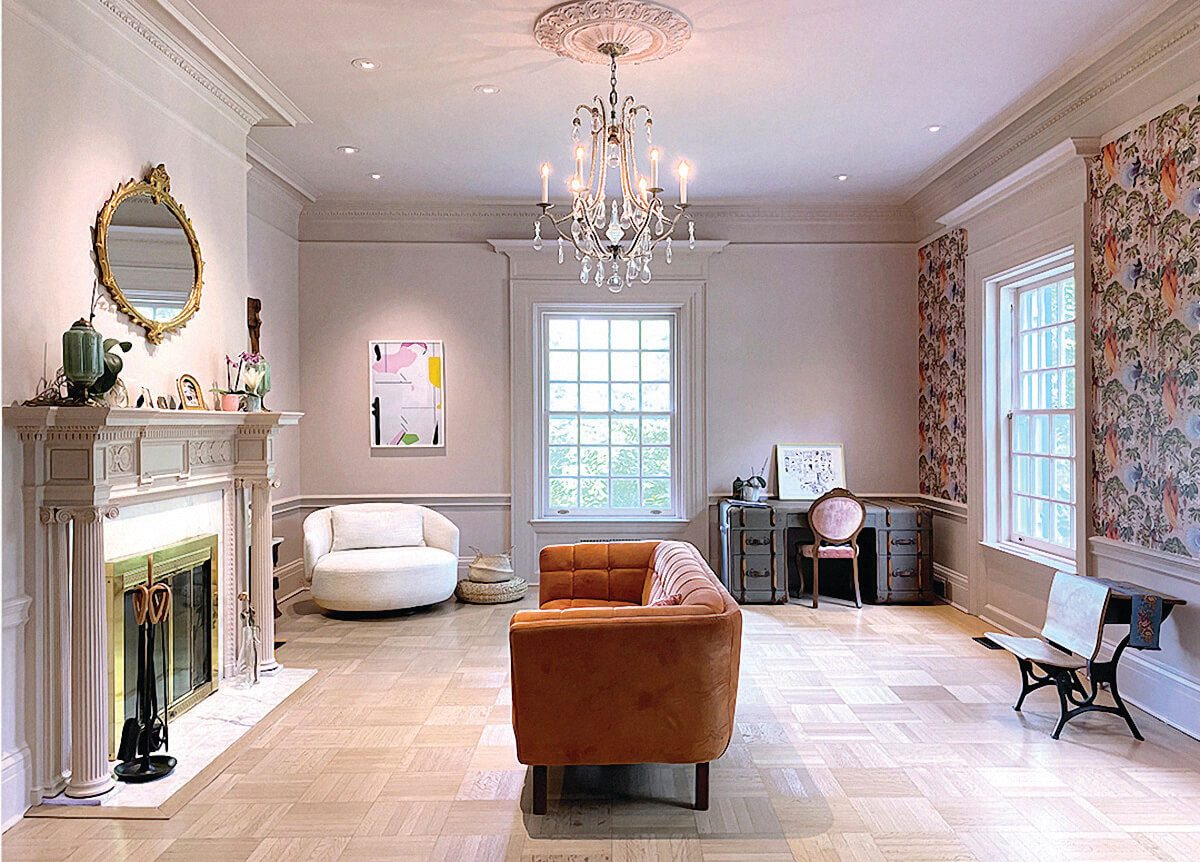 The third floor of this 1860s Franklin Street townhome in Mt. Vernon was a blank canvas when the client invited Baltimore-based Juniper House Studio to transform it. The greatest challenge was reimagining the expansive footprint into distinct yet harmonious zones, balancing openness with intimacy to create a space that felt both extraordinary and livable. “The space planning in this open plan reigns supreme with the ability to still create distinct areas through the use of chandeliers and area rugs,” says Smith. “All the spaces are cohesive as they transition between the areas but still stand on their own. This is a great example of maximizing an open floor plan.”