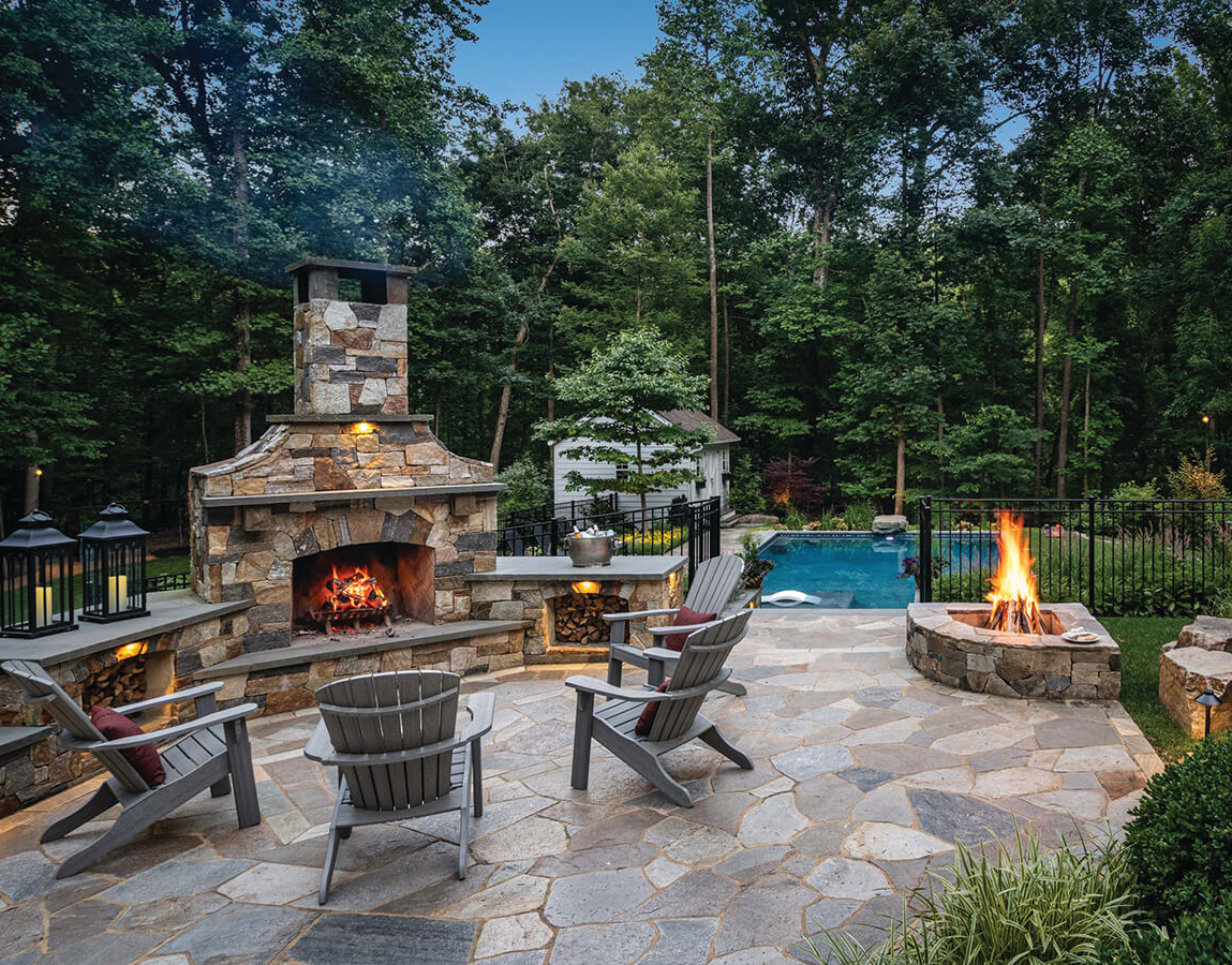 This project showcases the transformative power of exceptional landscape architecture by turning a wooded property into a secluded outdoor oasis that seamlessly blends craftsmanship, usability, and sustainability. At the heart of the property lies a custom-designed pool that is situated within a nature preserve. The design, by Howard County-based Absolute Landscape & Turf, honors its natural surroundings—lush greenery and thoughtfully placed hardscaping preserve the property’s character while enhancing its functionality and aesthetic appeal.