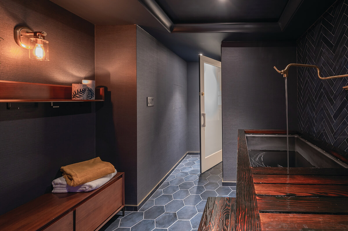 Baltimore-based Sunnyfields Cabinetry transformed a home into a personal sanctuary for its owners with the installation of a customdesigned wellness suite that included a hand-built sauna and cold plunge room. The sauna is constructed with warm, natural wood tones that wrap the space in a serene, earthy embrace. “The design excels at creating an inviting and moody refuge,” says Carlson.
