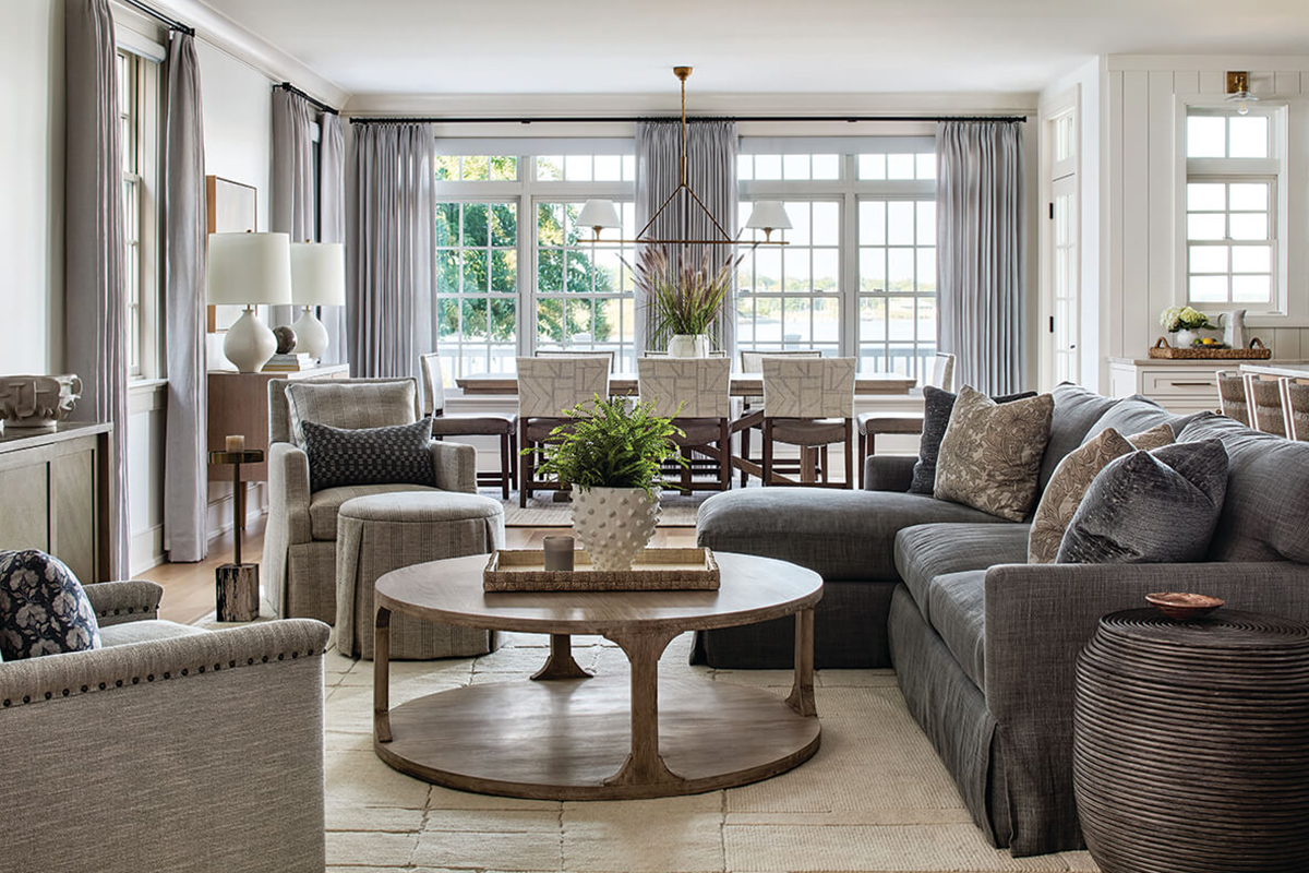 Located on the picturesque Chester River in Chestertown, this whole-home remodel by Towson-based Stephanie Gamble Interiors transformed a dated property into a modern retreat with breathtaking waterfront views. The result is a cohesive, inviting space that reflects the homeowners’ love for family, nature, and relaxed, waterfront living. “There’s a great sense of materiality and sense of place in the design of this home,” says Carlson.