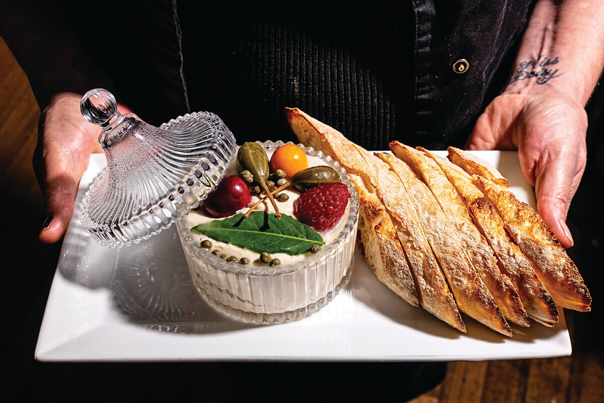 That ethos shows up in the kitchen, too. There are no false buzzwords like “hyper-local” or “sustainable” here; instead, the goal is quality—for the most part, proteins are sourced from Fells Point Wholesale Meats, seafood hails from Philadelphia’s Samuels & Son, produce gets dropped off by the regional Chesapeake Farm to Table collective, and loaves of bread for that vampire-defying appetizer are picked up at Maranto Bakery on Pearl Street. Each dish contains a dash of whimsy, and Karin takes great pride in their unexpected yet elegant simplicity.
