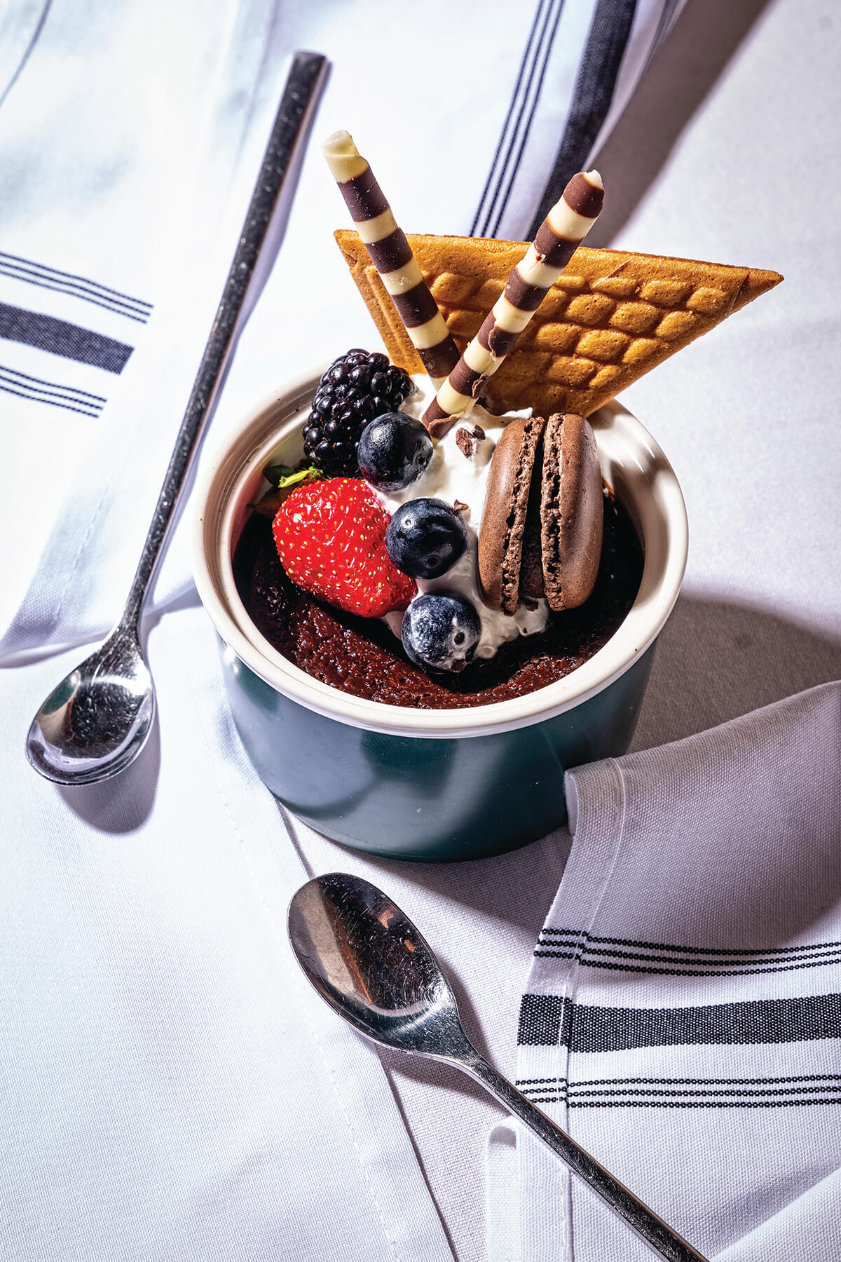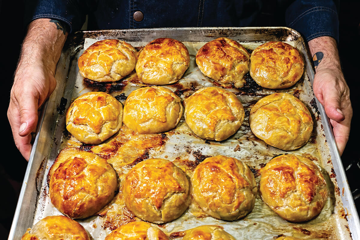 Both spouses agree that one balances out the other—him being the cool calm to her capriciousness, and there’s a clear camaraderie and quiet affection coursing between the two. A photograph from the early days captures it well, with the young couple exchanging a smile outside of their little red restaurant, with Bud’s old motorcycle in view. And then there’s the cover of this magazine’s 2000 “Best Restaurants” issue, when they posed as the straight-faced farmers in “American Gothic”—just one of the many times that local press pampered them with praise.