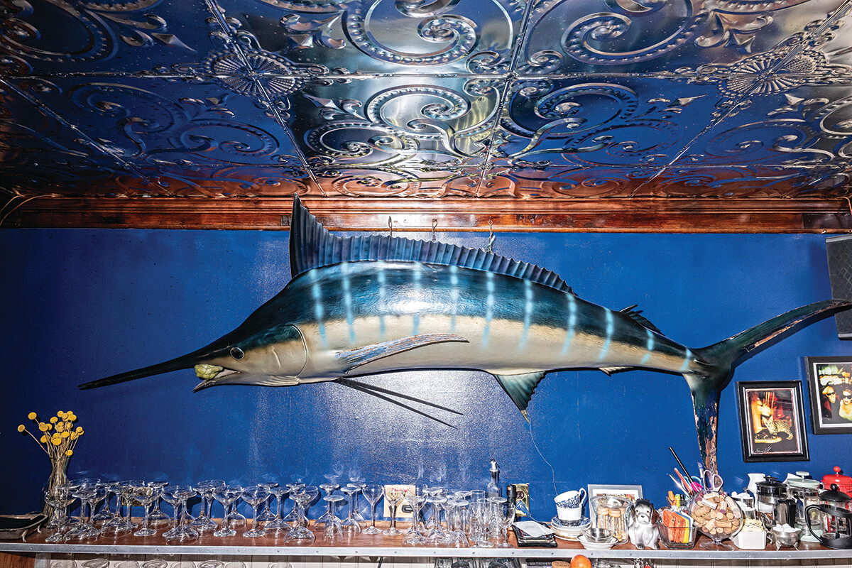 Inside her beloved rowhome restaurant, the taxidermied marlin and neon “cocktails” sign still hang, as they have for decades. But there’s also a new tin ceiling, shiny glass chandeliers, and a fresh coat of paint on the cleaned-up walls, with much of the iconic bric-a-brac that once graced them—string lights, folk art, knickknacks, even the occasional Ouija board—never replaced after a cigarette fire engulfed the place in 2017.