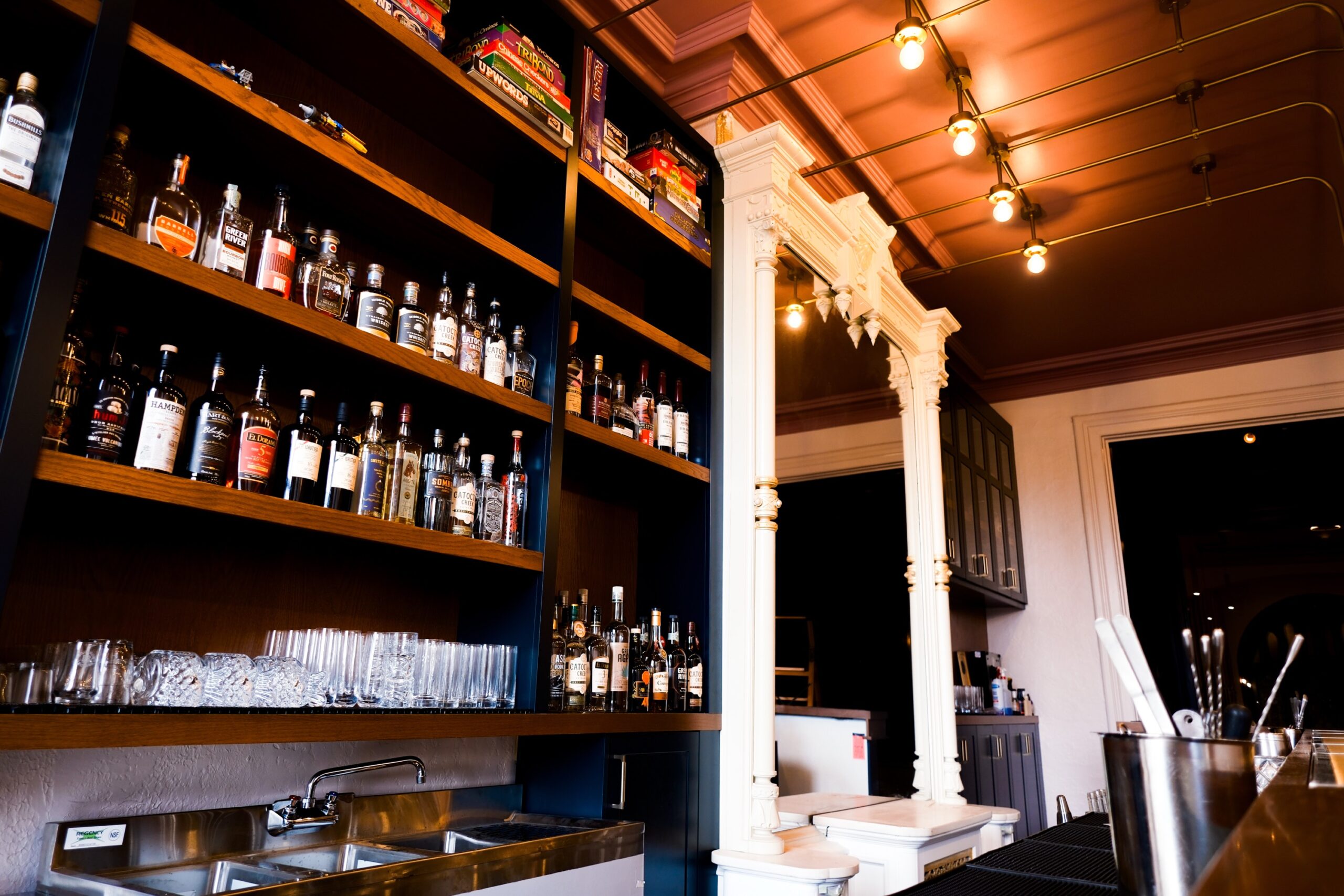 The 90-seat interior features built-in leather furniture, ambient lighting, and unique historical touches. Arguably, the best seat in the house is going to be a big booth by the building’s original elevator shaft.