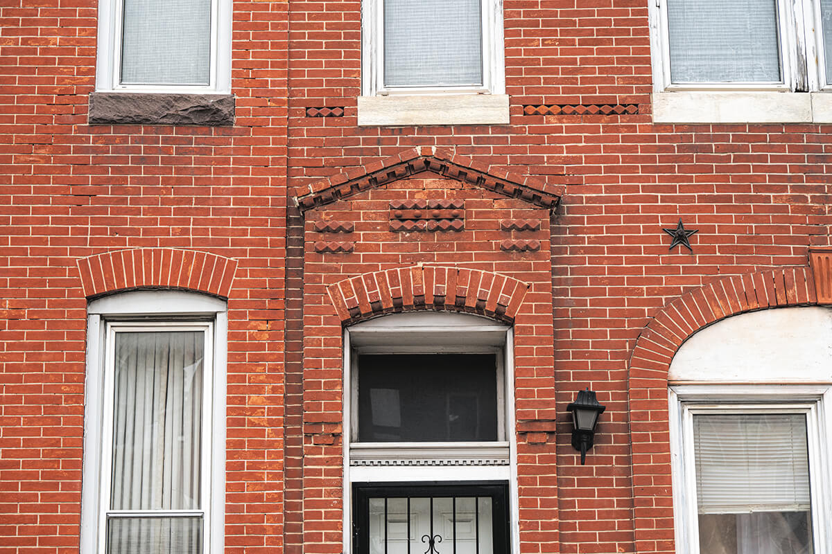 Also of note are the various bonds of brick, aka patterns in which they’re laid by masons, from the old-school “Flemish” to the more contemporary “running”—first into oyster-shell mortar, then later Portland cement. Not to mention the brick embellishments, from doorways to windows to cornices (see Belvedere Terrace in Greenmount West).