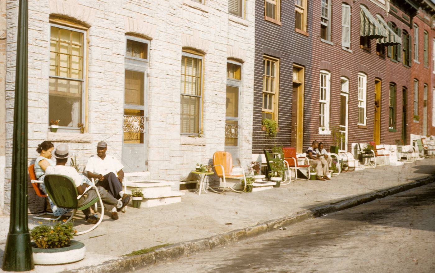 Residents hanging on their rowhome stoops. Courtesy of the BCA.