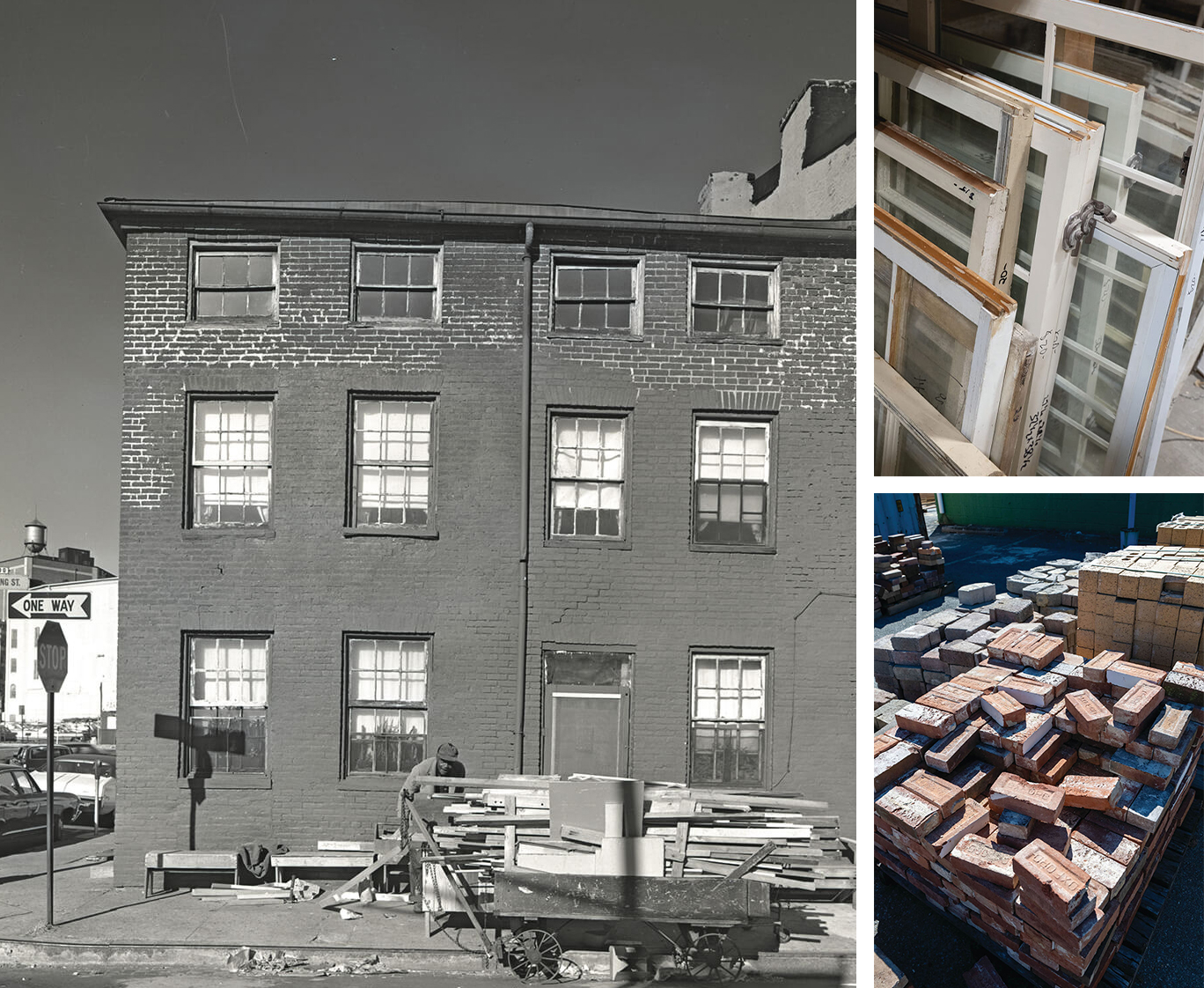 Stirling Street renovations, circa 1970s. Home materials at The Loading Dock in East Baltimore today. Courtesy of the MCHC and Christopher Myers, respectively.