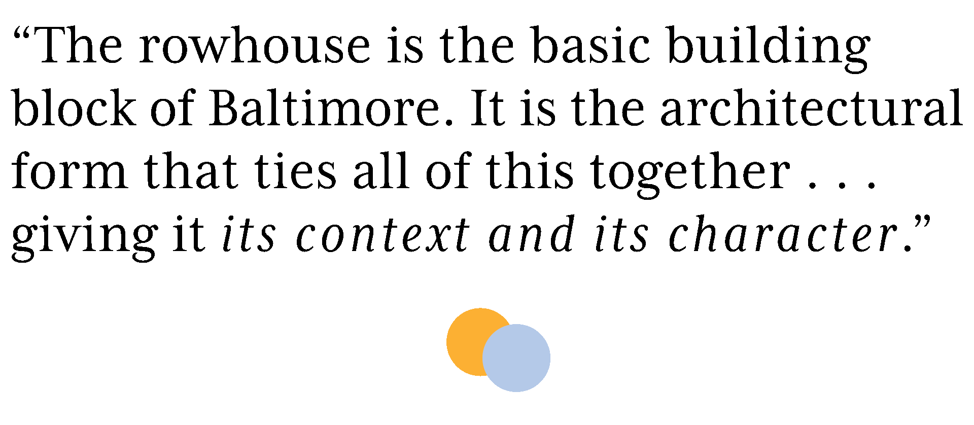 “The rowhouse is the basic building block of Baltimore,” says Eric Holcomb, executive director at the city’s Commission for Historical and Architectural Preservation, aka CHAP. “It is the architectural form that ties all of this together . . . giving it its context and its character.”