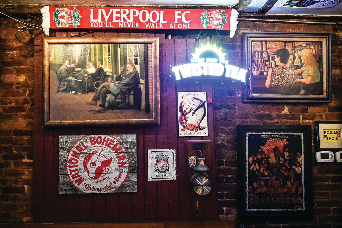 It’s the kind of place that today’s hipsters could only wish to emulate. “But nothing in here was bought at a store, or could be replaced,” says Cushing, pointing to the murals of Irish history painted by late local artist C.W. Newton, or behind the stage, to the “Wall of Fallen Soldiers,” hung with portraits of his dad, “Big Tony,” and his original co-owner, Kenny Orye, both of whom have long since passed away.