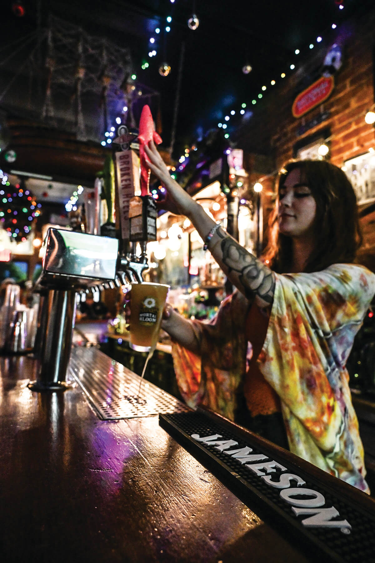 Besides, he wants to finish his dad’s to-do list—the last item left being an enclosed balcony above the stage, where a 1920s pool table is already waiting. Not that there’s much time to make it happen. The bar doesn’t take a day off and slings some thousand drinks a week year-round. No matter that closing time comes early—the clock above the refrigerator is set 15 minutes ahead.