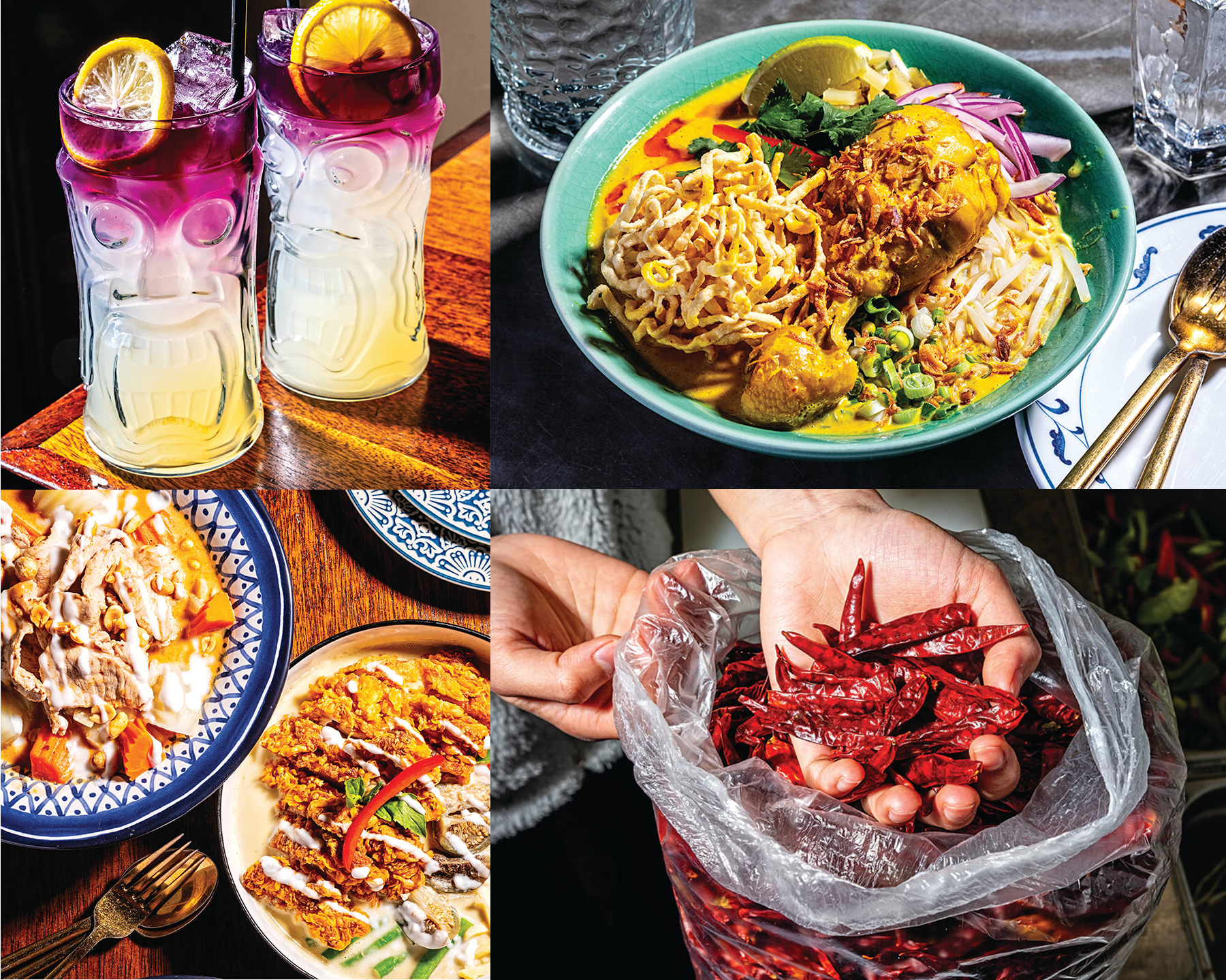 The curries: The menu’s three curries—green, massaman, and panang—are each made from scratch and with differing flavor profiles, using ingredients like fingerroot and makrut lime leaves. The bowls come deftly garnished, with a chiffonade of lime leaves or swirls of coconut milk.