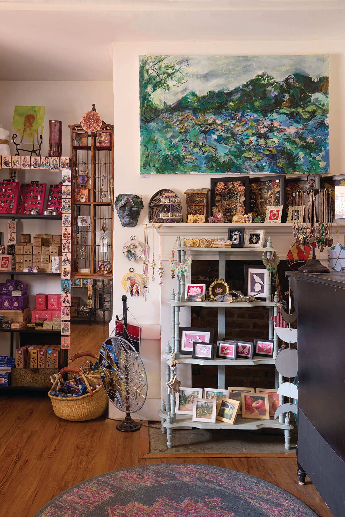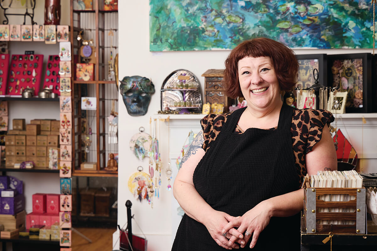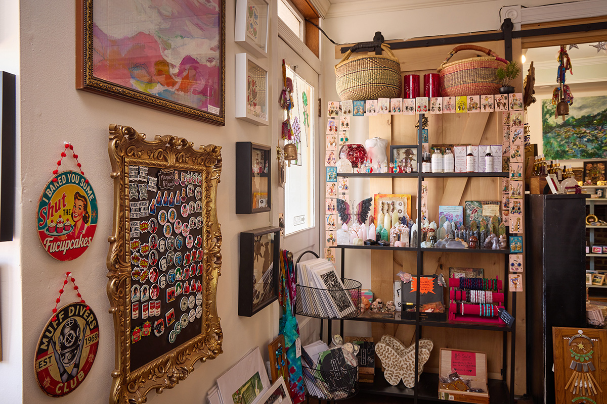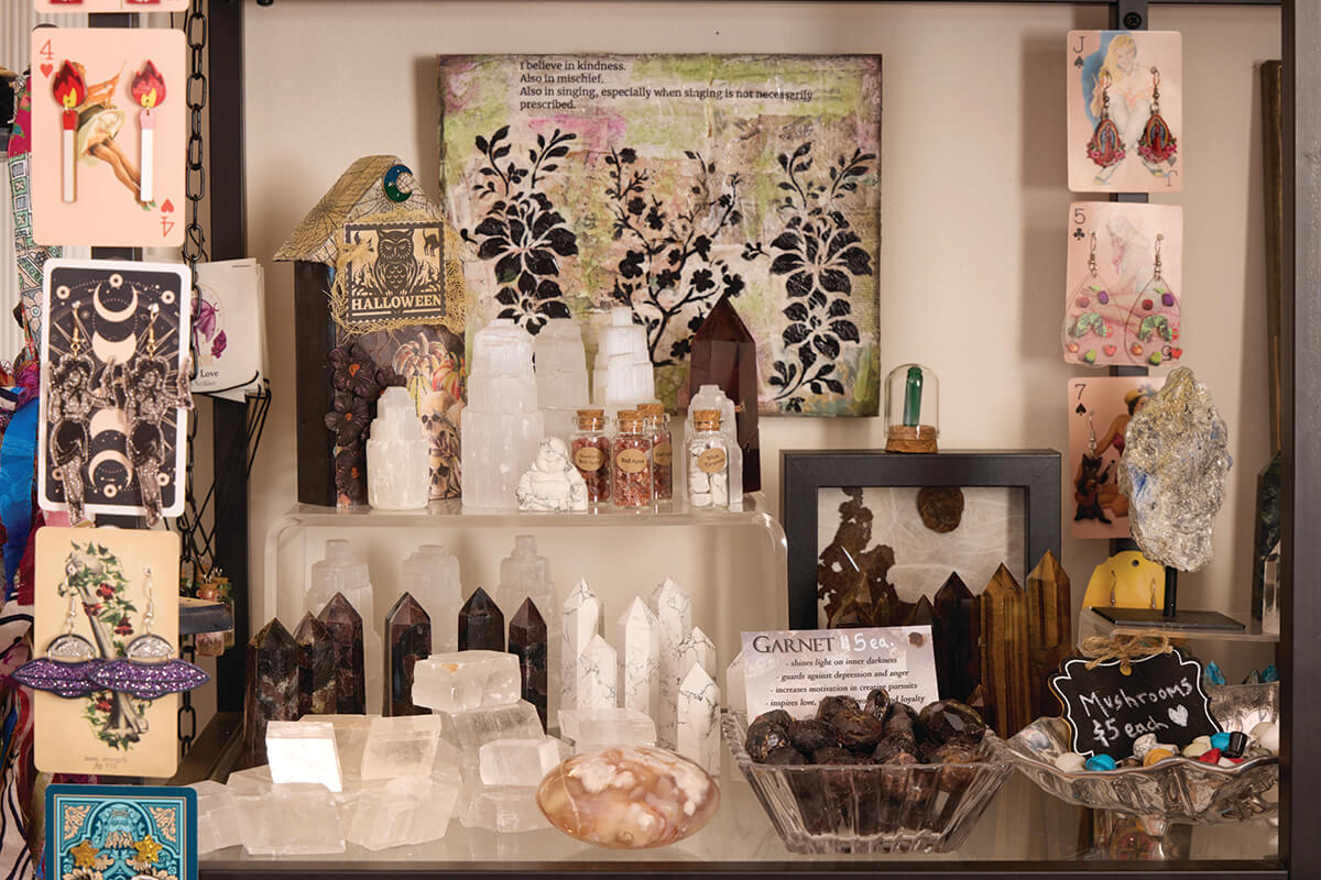 She’ll flash her big smile and before you know it, you’re sharing your life story and she’s helping you pick the right crystal to get your aura back on track or she’s describing each artist in the shop like a proud parent.